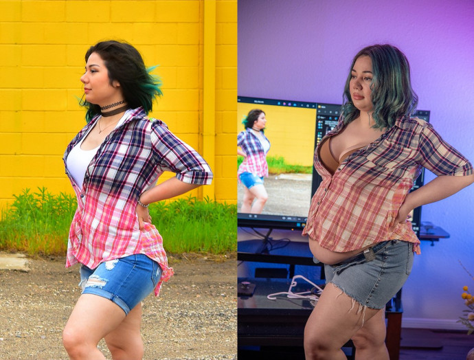 #Couchqueen считает, что старая одежда ей всё ещё подходит) #bbw #фиди #доипосле #gainergirl