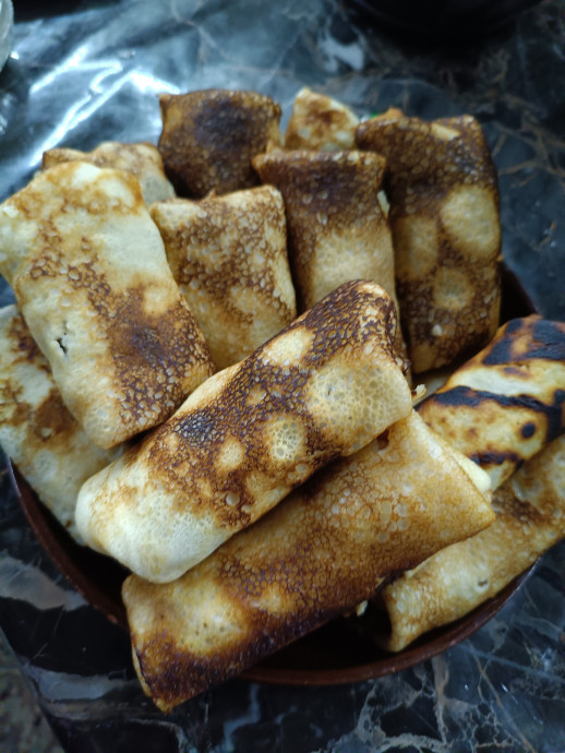 Вчера приготовила много вкусных блинчиков с мясом и ветчиной и сыром!
