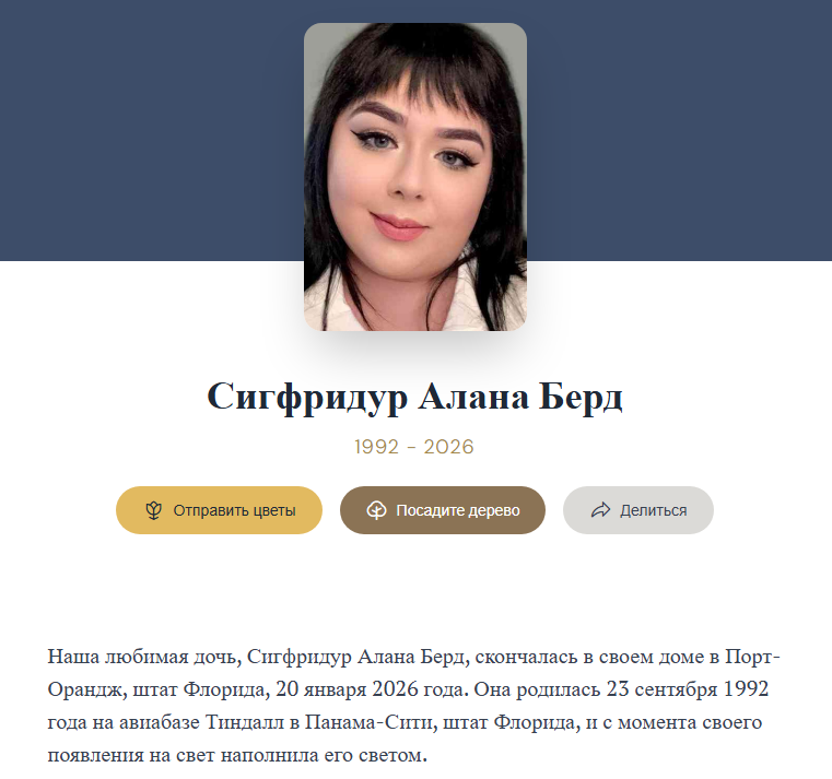 Ей было 32 года. Причина смерти на данный момент не озвучена.